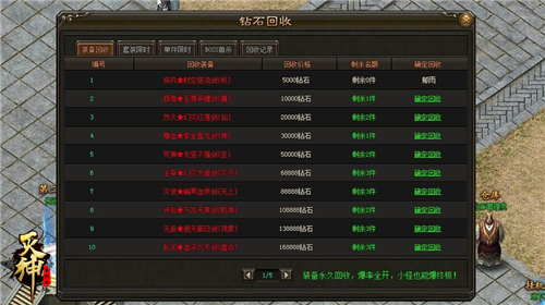 “爆装”是传奇游戏的一大亮点,但是辛辛苦苦打怪获得的战利品,穿之无用丢之可惜,让不少玩家为之困扰,为此《灭神》为玩家提供了非常便捷又实用的“回收”玩法,废弃套装可兑换成钻石,相当于兑换成RMB,非常实用又便捷,还能为背包省下不少空间哦!