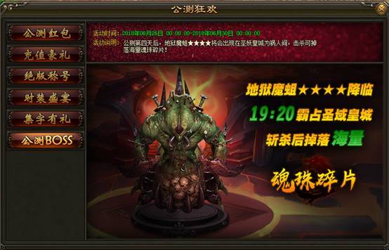 2. 地狱魔蛆将会在公测第四天的19:20分出现在圣妖城