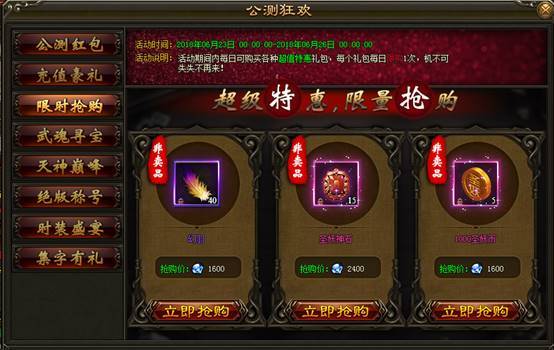 1. 活动期间内,每日可购买各种非卖品特惠礼包,每个礼包每日限购1次。