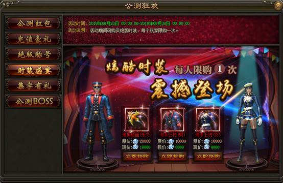 1. 活动期间内,玩家可购买绝版活动时装,每个玩家限购一次