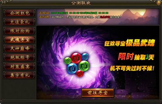 1. 活动期间,从6月20日起根据开服时间持续3天,可在王之宝藏中抽取武魂,活动限时3天,机不可失过时不候