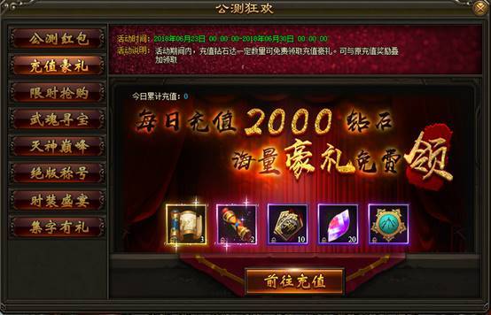 1. 活动期间内,每日充值达指定钻石数额,即可领取充值奖励,可原每日充值奖励叠加领取。