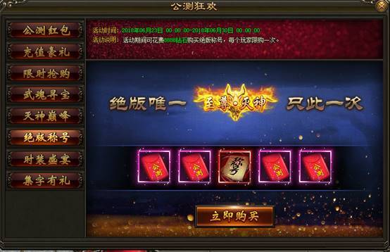 2. 玩家花费8888钻石购买称号,附赠4个公测红包