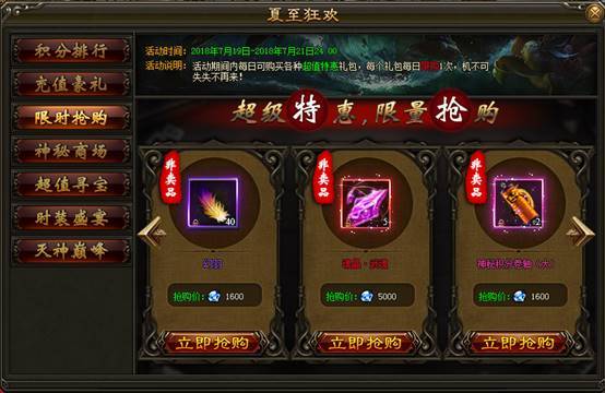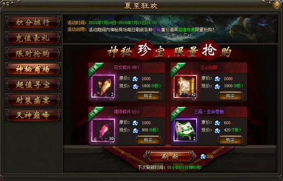 2. 活动期间内,神秘商场每日刷新各种珍稀道具,打折出售限量抢购。