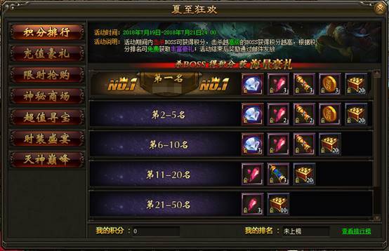 2. 活动期间内,击杀boss可获得积分,击杀越高级的BOSS获得的积分越高,根据积分排名可免费获得奖励。
