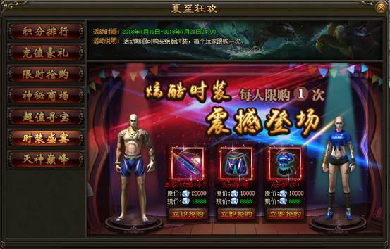 2. 活动期间内,玩家可购买绝版活动时装,每个玩家限购一次