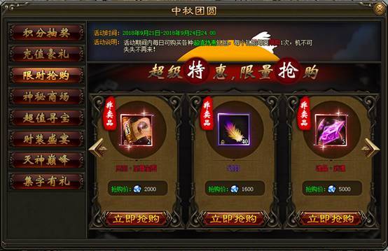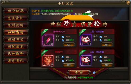 2. 活动期间内,神秘商场每日刷新各种珍稀道具,打折出售限量抢购。