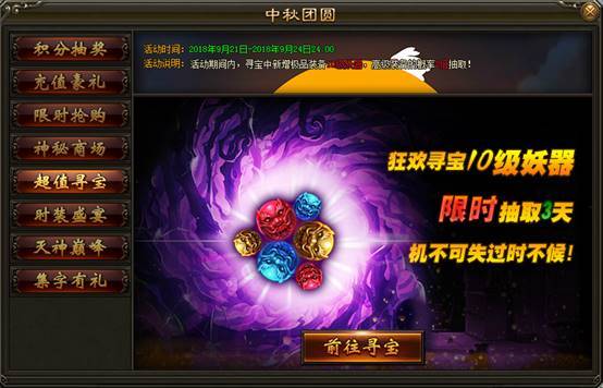 1. 活动期间,王之宝藏可抽取10级妖器,高级装备概率翻倍!活动限时3天,机不可失过时不候