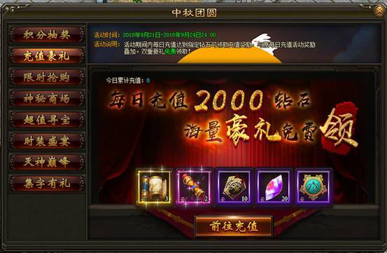 2. 活动期间内,每日充值达指定钻石数额,即可领取充值奖励,可原每日充值奖励叠加领取。