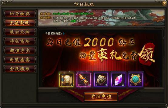 2. 活动期间内,每日充值达指定钻石数额,即可领取充值奖励,可原每日充值奖励叠加领取。