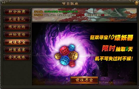 1. 活动期间,王之宝藏可抽取10级妖器,高级装备概率翻倍!活动限时3天,机不可失过时不候