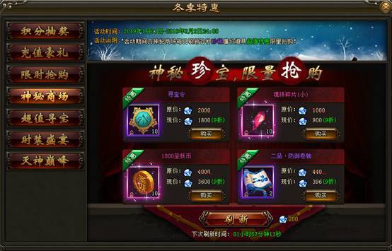 2. 活动期间内,神秘商场每日刷新各种珍稀道具,打折出售限量抢购。