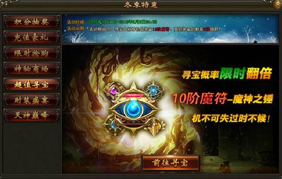 1. 活动期间,王之宝藏可抽取10阶魔符!高级装备概率翻倍!活动限时3天,机不可失过时不候