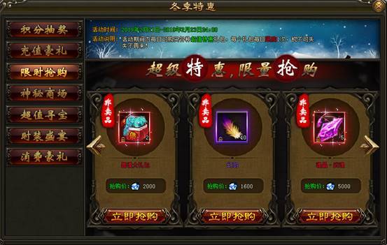 2. 活动期间内,神秘商场每日刷新各种珍稀道具,打折出售限量抢购。