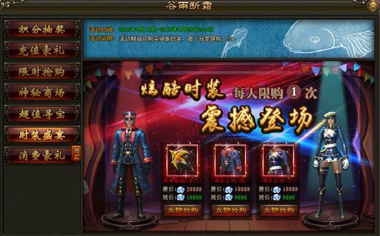 2. 活动期间内,玩家可购买绝版活动时装,每个玩家限购一次