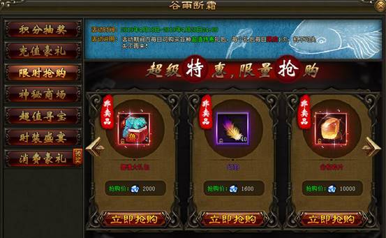 2. 活动期间内,神秘商场每日刷新各种珍稀道具,打折出售限量抢购。