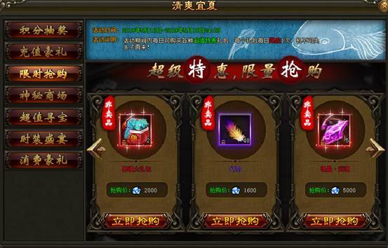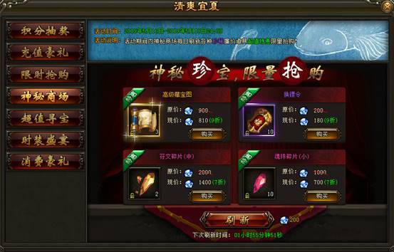 2. 活动期间内,神秘商场每日刷新各种珍稀道具,打折出售限量抢购。