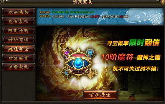 1. 活动期间,王之宝藏可抽取灭神装备!高级装备概率翻倍!活动限时3天,机不可失过时不候