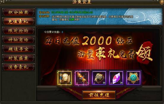 2. 活动期间内,每日充值达指定钻石数额,即可领取充值奖励,可原每日充值奖励叠加领取。