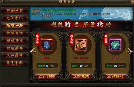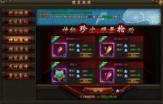 2. 活动期间内,神秘商场每日刷新各种珍稀道具,打折出售限量抢购。