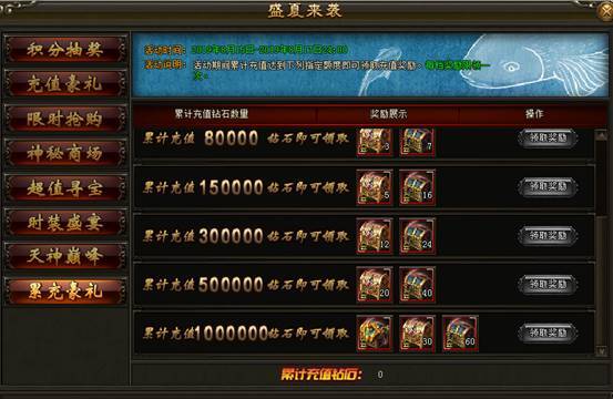 2. 活动期间内,每日充值达指定钻石数额,即可领取充值奖励,可原每日充值奖励叠加领取。