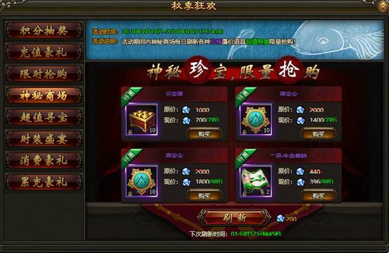 2. 活动期间内,神秘商场每日刷新各种珍稀道具,打折出售限量抢购。
