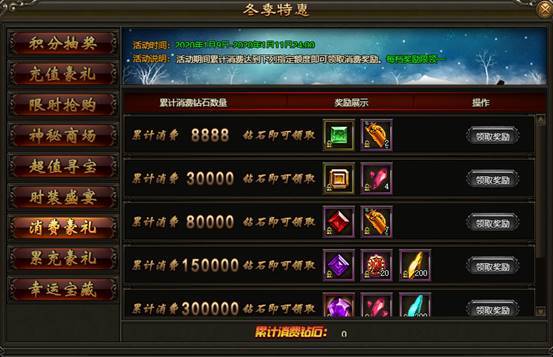 3. 有两档奖励可领取:2000钻石、20000钻石。每档都有丰厚豪礼免费领取。