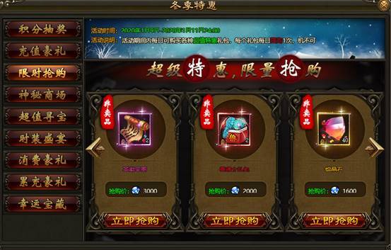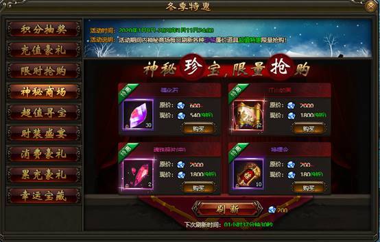 2. 活动期间内,神秘商场每日刷新各种珍稀道具,打折出售限量抢购。