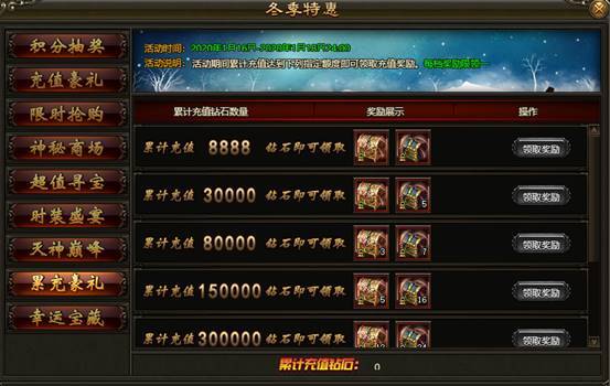 3. 有两档奖励可领取:2000钻石、20000钻石。每档都有丰厚豪礼免费领取。
