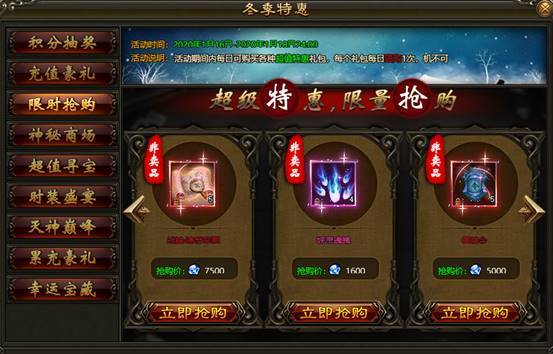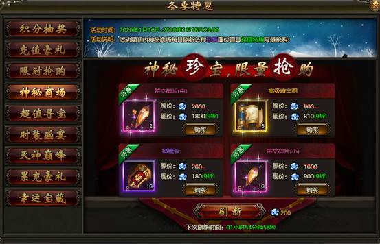 2. 活动期间内,神秘商场每日刷新各种珍稀道具,打折出售限量抢购。