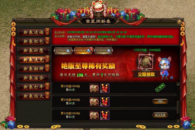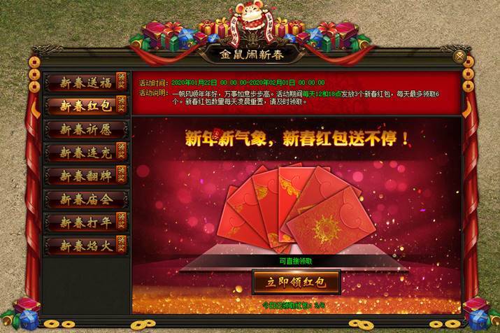 活动入口:右上角“金鼠闹春”按钮