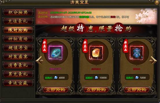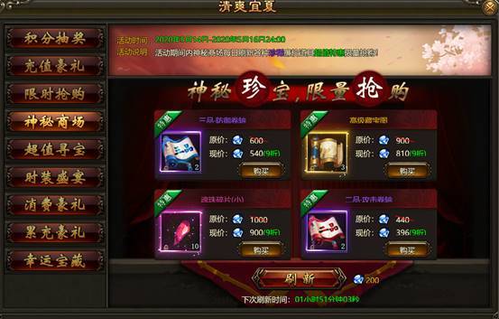 2. 活动期间内,神秘商场每日刷新各种珍稀道具,打折出售限量抢购。