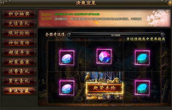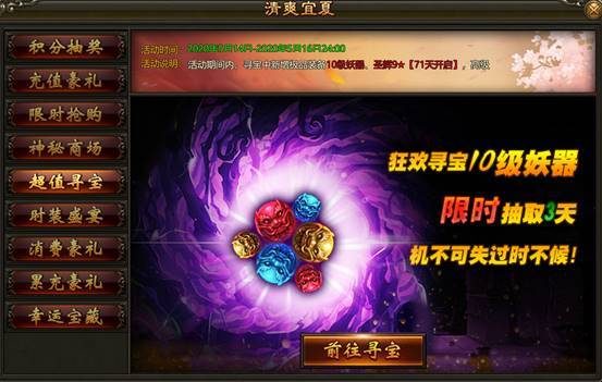 1. 活动期间,王之宝藏可抽取妖器装备!高级装备概率翻倍!活动限时3天,机不可失过时不候