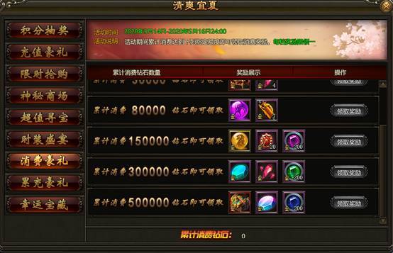 3. 有两档奖励可领取:2000钻石、20000钻石。每档都有丰厚豪礼免费领取。