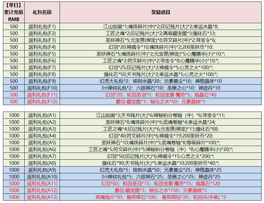如单日充值1500,可领取三个500档,也可领取1000档一个和500档位一个用户自由组合