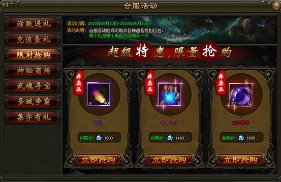 2. 活动期间内,每日可购买各种非卖品特惠礼包,每个礼包每日限购1次。