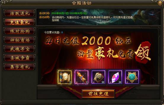 2. 活动期间内,每日充值达指定钻石数额,即可领取充值奖励,可原每日充值奖励叠加领取。