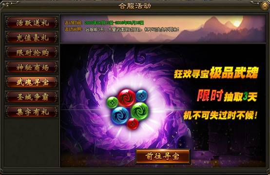2. 活动期间,可在王之宝藏中抽取武魂,活动限时3天,机不可失过时不候