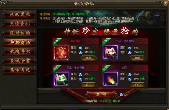 2. 活动期间内,神秘商场每日刷新各种珍稀道具,打折出售限量抢购。