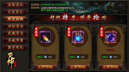 为迎接公测,官方准备了九重福利活动,为你带来满满惊喜!同时,360游戏将在官方微博、微信和花椒直播开展活动,只要积极参与互动就有机会领取森然BOBO麦克风、薰寻生巧、游戏礼包等诸多实物大礼,《灭神》与你一同激情酣战征服世界!