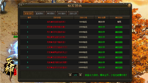 所谓财富,就是积少成多,没有办法爆BOSS夺神装,爆点单件装备赚点小钱也是可以哒!通过“单件限时”活动,玩家可以将一些日常常见的装备兑换小额的钻石,从20钻/件——3000钻/件,只要你能拿的到,统统都能兑成钱!当然越容易获得的装备,抢占名额也就越难,如果你手里刚好有这些宝贝,事不宜迟,马上兑换钻石,通过合理的理财使自己富足吧!