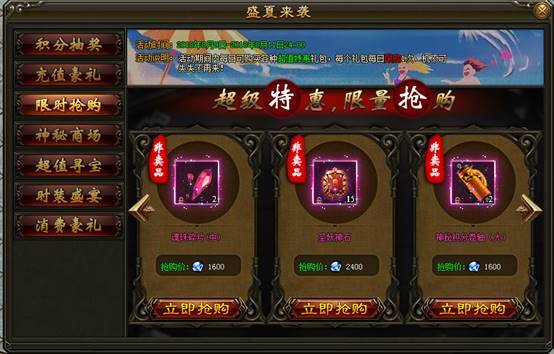 2. 活动期间内,神秘商场每日刷新各种珍稀道具,打折出售限量抢购。