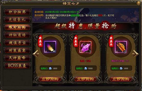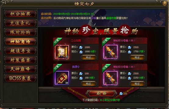 2. 活动期间内,神秘商场每日刷新各种珍稀道具,打折出售限量抢购。