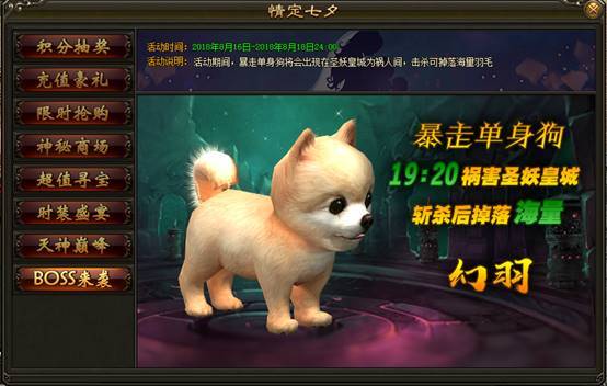 3. 暴走单身狗将会在活动期间内的19:20分出现在圣妖城