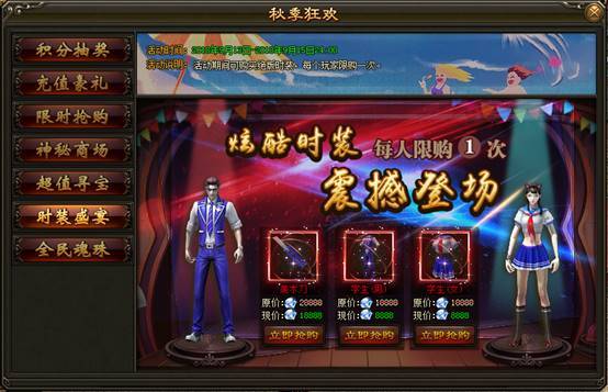 2. 活动期间内,玩家可购买绝版活动时装,每个玩家限购一次