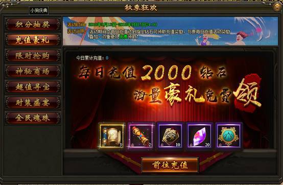 2. 活动期间内,每日充值达指定钻石数额,即可领取充值奖励,可原每日充值奖励叠加领取。