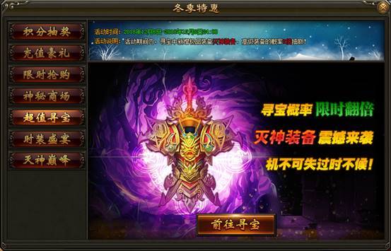 1. 活动期间,王之宝藏可抽取灭神装备,高级装备概率翻倍!活动限时3天,机不可失过时不候