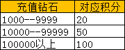 每天最多领取1次。因此即便当日充值大于10w钻石,最多也只获取170积分(20+50+100=170).