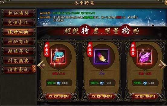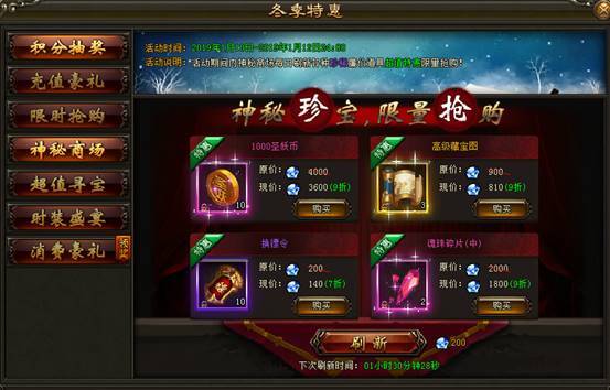 2. 活动期间内,神秘商场每日刷新各种珍稀道具,打折出售限量抢购。