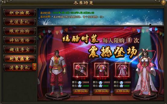 2. 活动期间内,玩家可购买绝版活动时装,每个玩家限购一次